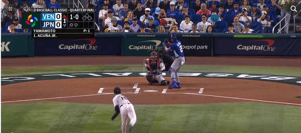 El encuentro ha comenzado con una intensidad electrizante. En la misma primera entrada, Ronald Acuña Jr. conectó un cuadrangular solitario por el jardín central derecho, dándole a la Vinotinto una ventaja temprana de 1-0.