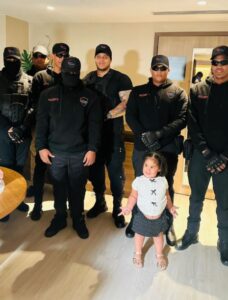 En la imagen, la pequeña aparece posando con más de cinco miembros de seguridad, lo que sorprendió a muchos y se convirtió rápidamente en tendencia.